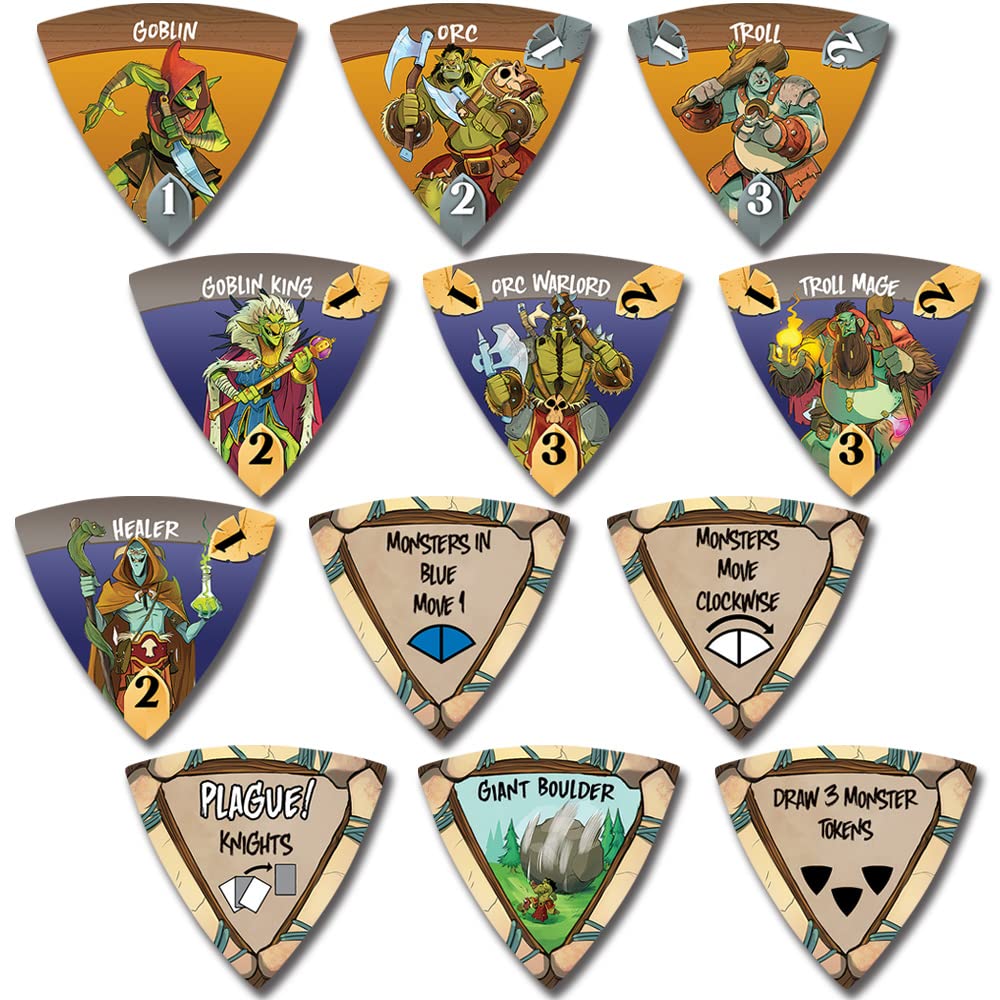 • Players must work together to defeat monsters advancing from the forest edge toward the castle at the center of the board