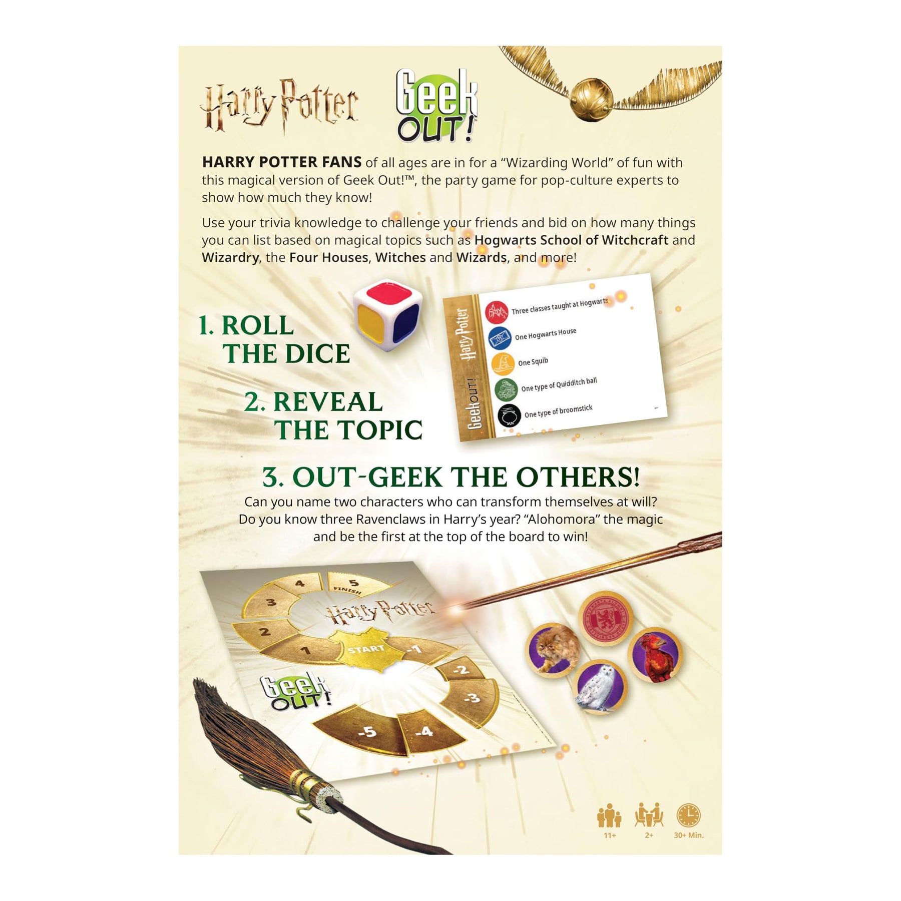 Test your knowledge of the Wizarding World with Geek Out: Harry Potter, a trivia card game that challenges fans to prove their expertise on characters, spells, magical creatures, and more from the beloved Harry Potter universe.