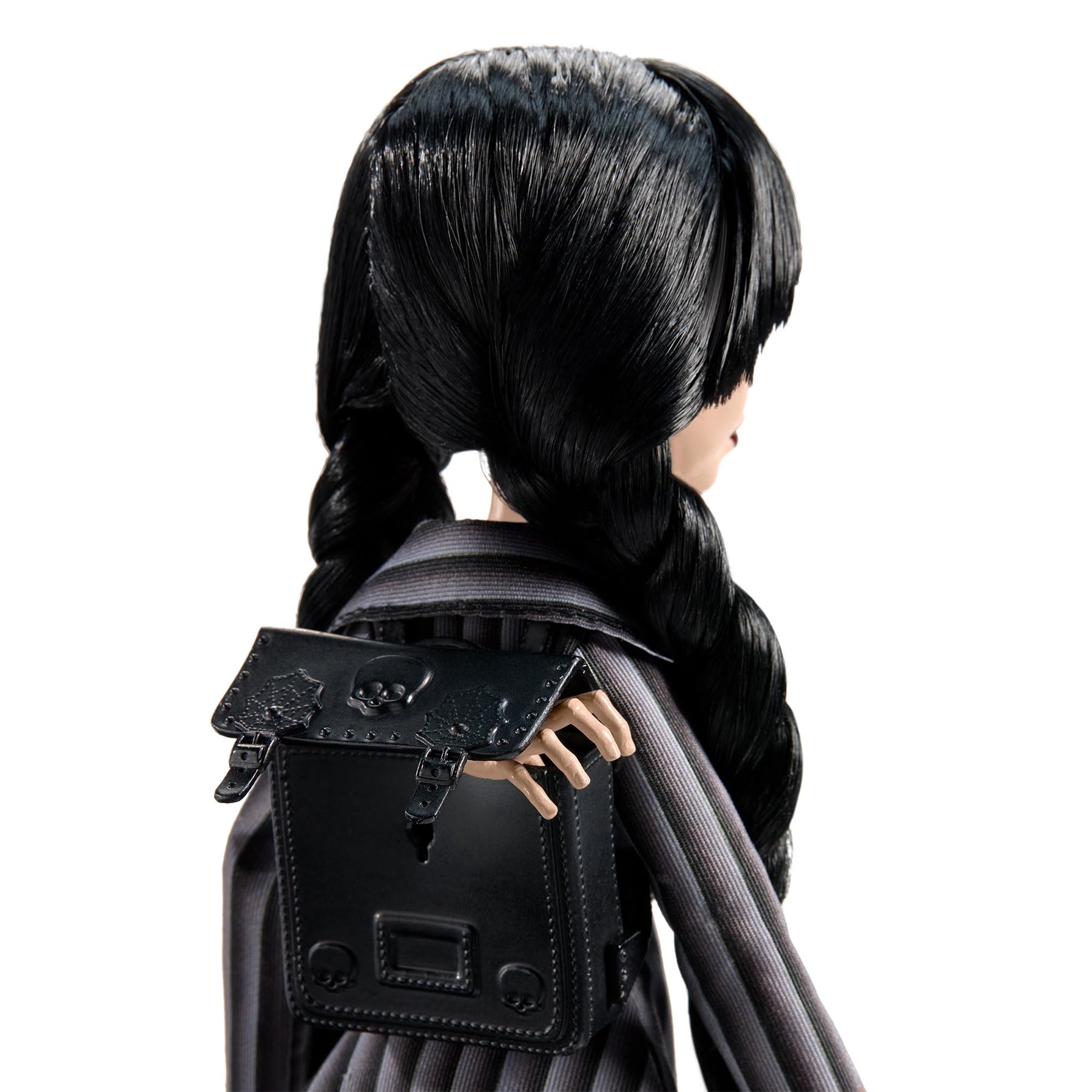 The Monster High Wednesday Addams Doll brings the eerie charm of the iconic character to life, reimagined through the unique lens of Monster High. Dressed in her Nevermore Academy uniform, this collectible doll captures Wednesday's gothic style and dark wit, making her a must-have for fans of the hit series.