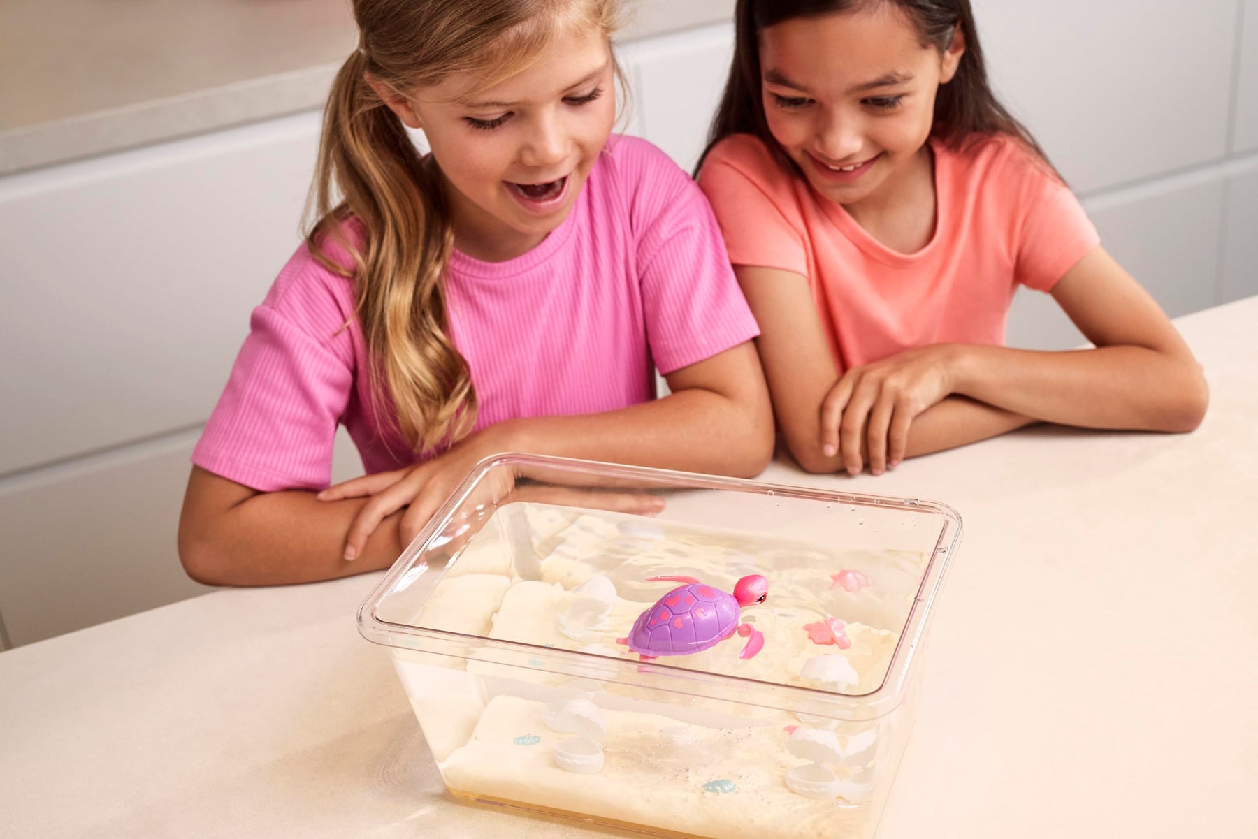 Discover the magic of the Pets Alive Mama Turtle Surprise by ZURU, an interactive robot toy pet turtle that swims in water and walks on land. This engaging playset offers a fun surprise experience with 4 eggs to pop open—hatch 2, 3, or 4 baby turtles and enjoy endless resettable play!