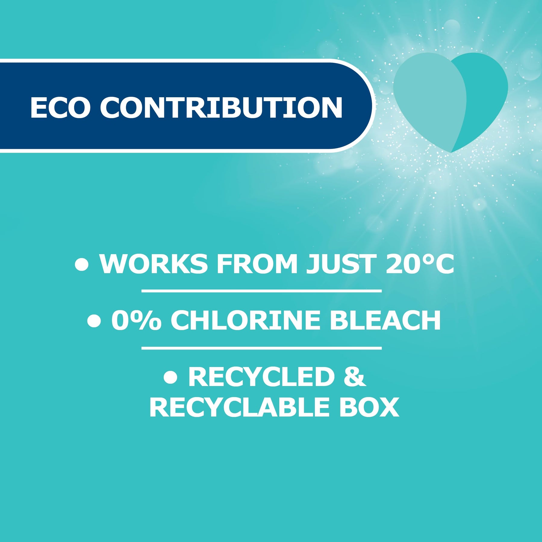 - Contains oxygen-based bleaching agents (15-30%) and optical brighteners