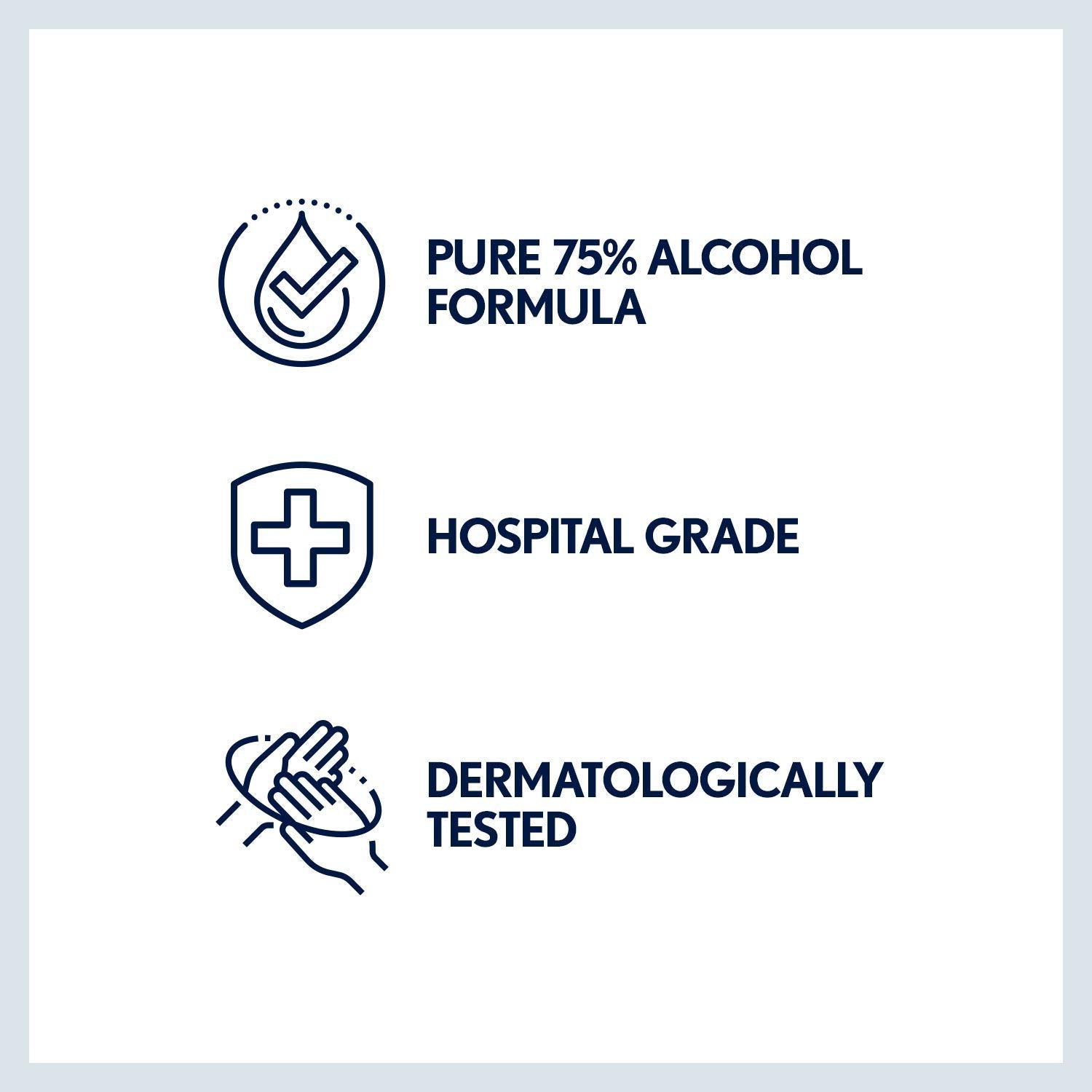 • Alcohol-based formula kills 99.9% of viruses and bacteria