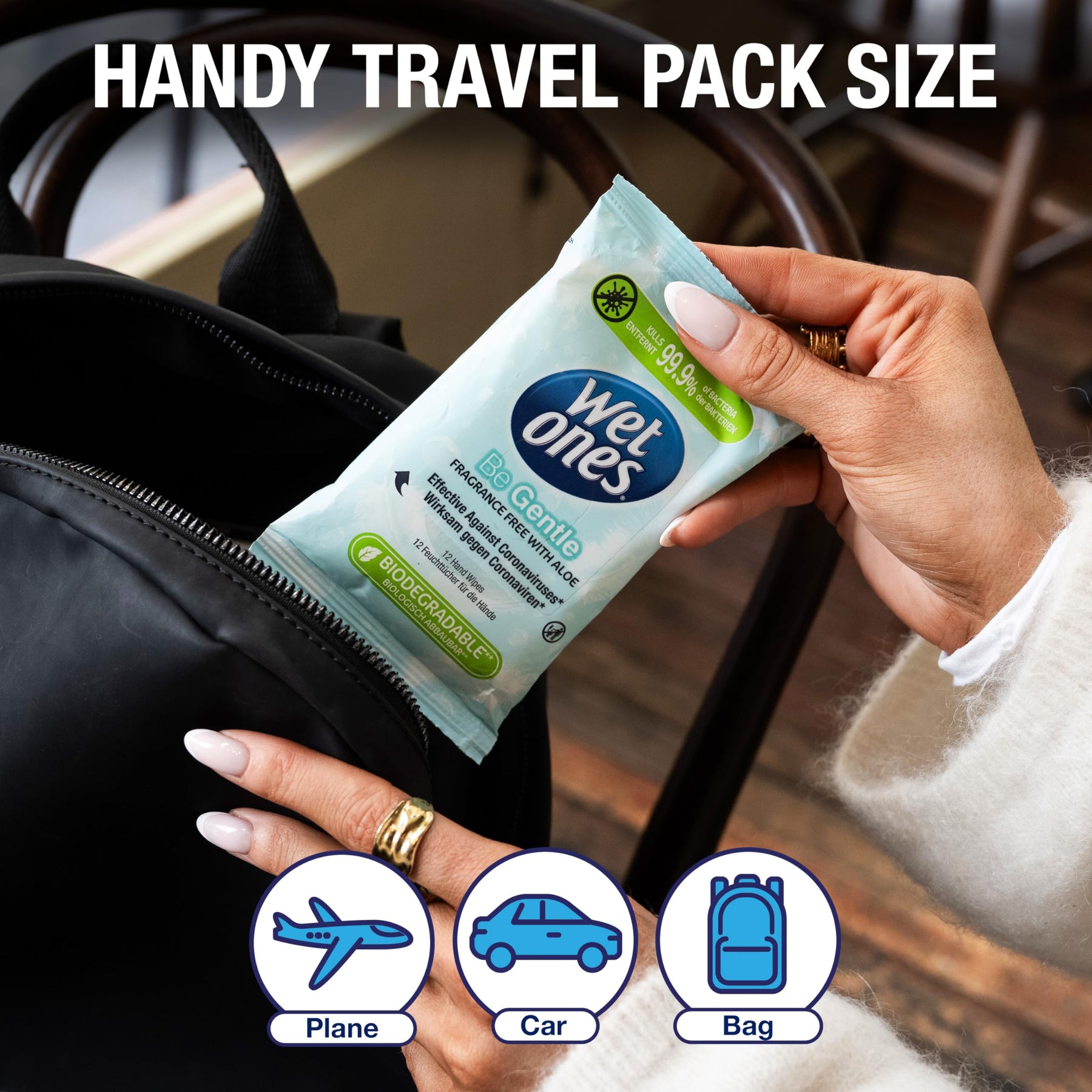 Wet Ones Be Gentle Plastic-Free Antibacterial Pocket Hand Wipes