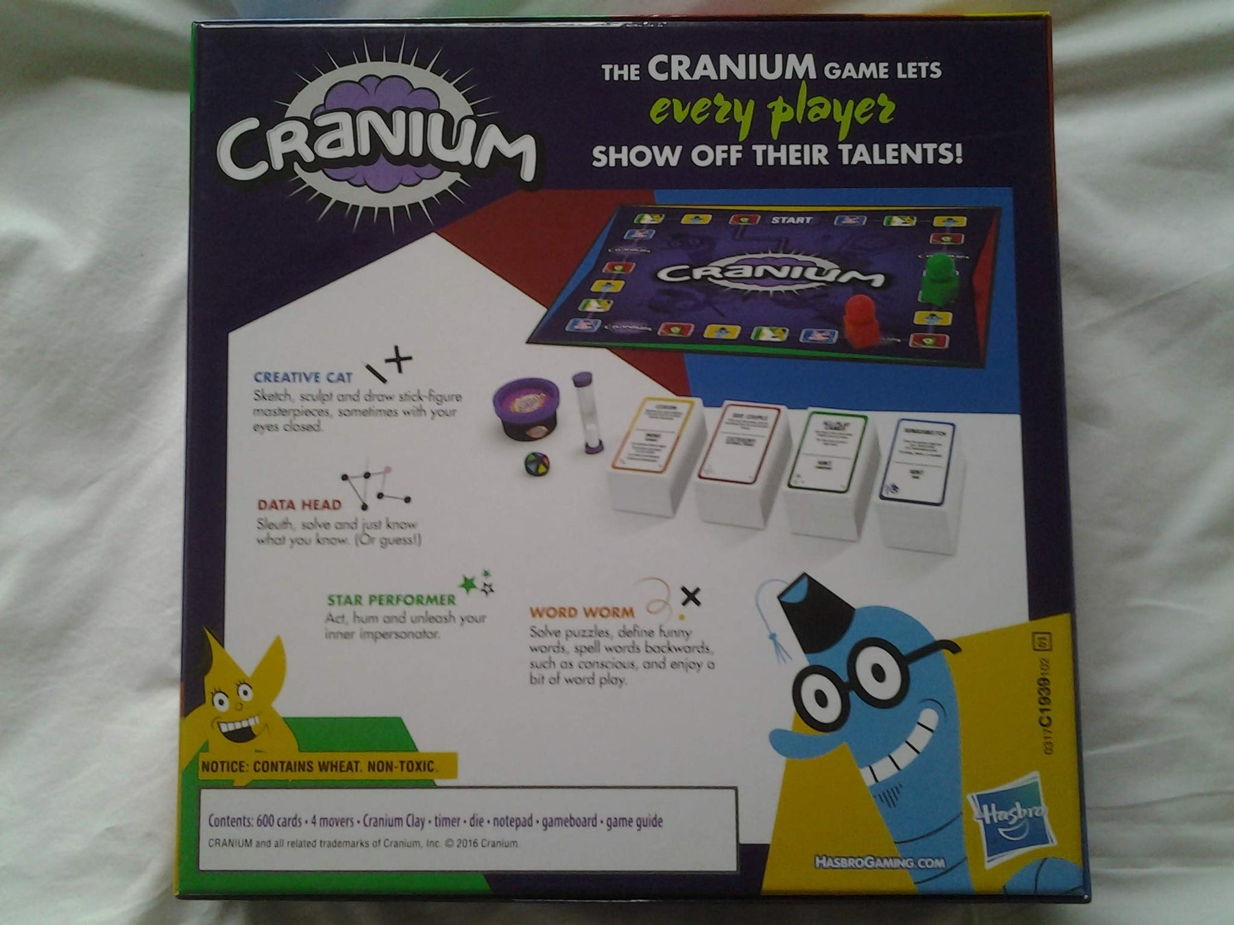 Enthält 600 Karten, 4 Spielfiguren, Cranium Clay, Zeitmesser, Würfel, 1 Notizblock und eine Anleitung.