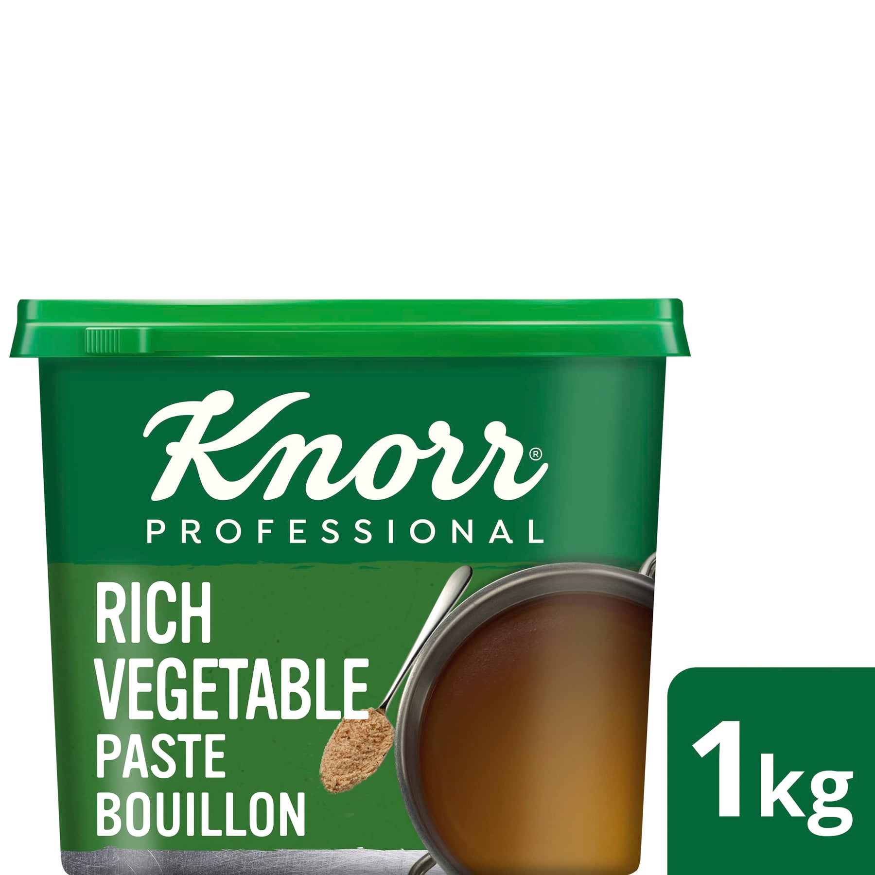 Knorr Rich Vegetable Flavour Paste Bouillon creates perfect bases and has been voted best stock mix by the Chefs Choice Award for four years running. This gluten-free and lactose-free bouillon is ideal for refining and seasoning a variety of dishes. Use it as a stock, base, seasoning, or more. Each 1kg tub can make up to 40 litres of stock, making it ideal for commercial or home use.