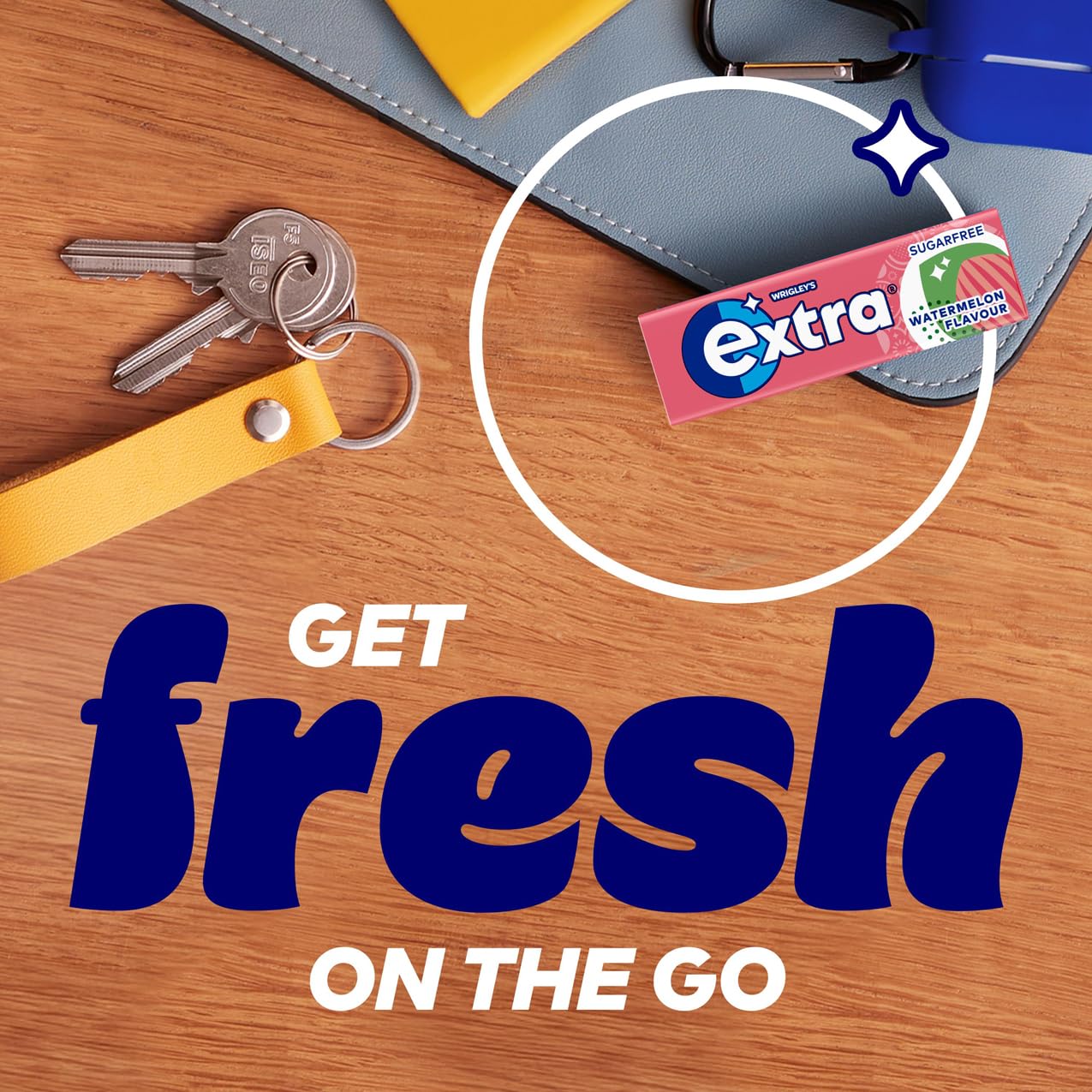 Stay fresh and confident throughout the day with Extra Watermelon Flavour Sugar Free Chewing Gum. Perfect for on-the-go freshness, this sugar-free gum is ideal for maintaining fresh breath after meals or during busy workdays. With a delicious watermelon taste and the added benefits of xylitol, it's a smart choice for both breath freshness and dental health.