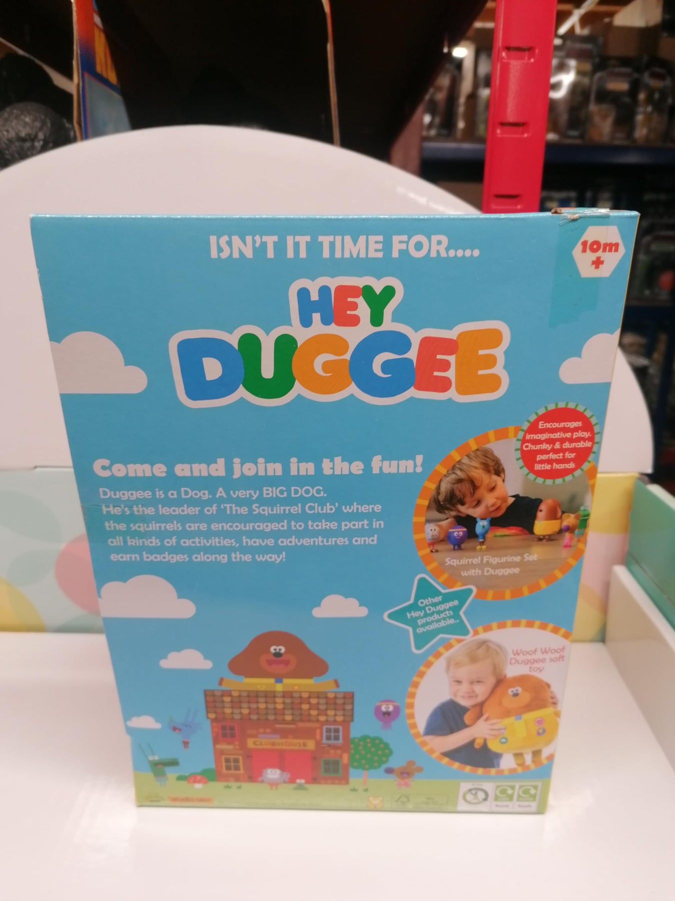 Basado en Duggee del muy querido programa de CBeebies Hey Duggee. Incluye 6 divertidos sonidos de woof woof del programa Duggee es súper suave y abrazable Incluye una insignia de personaje coleccionable.