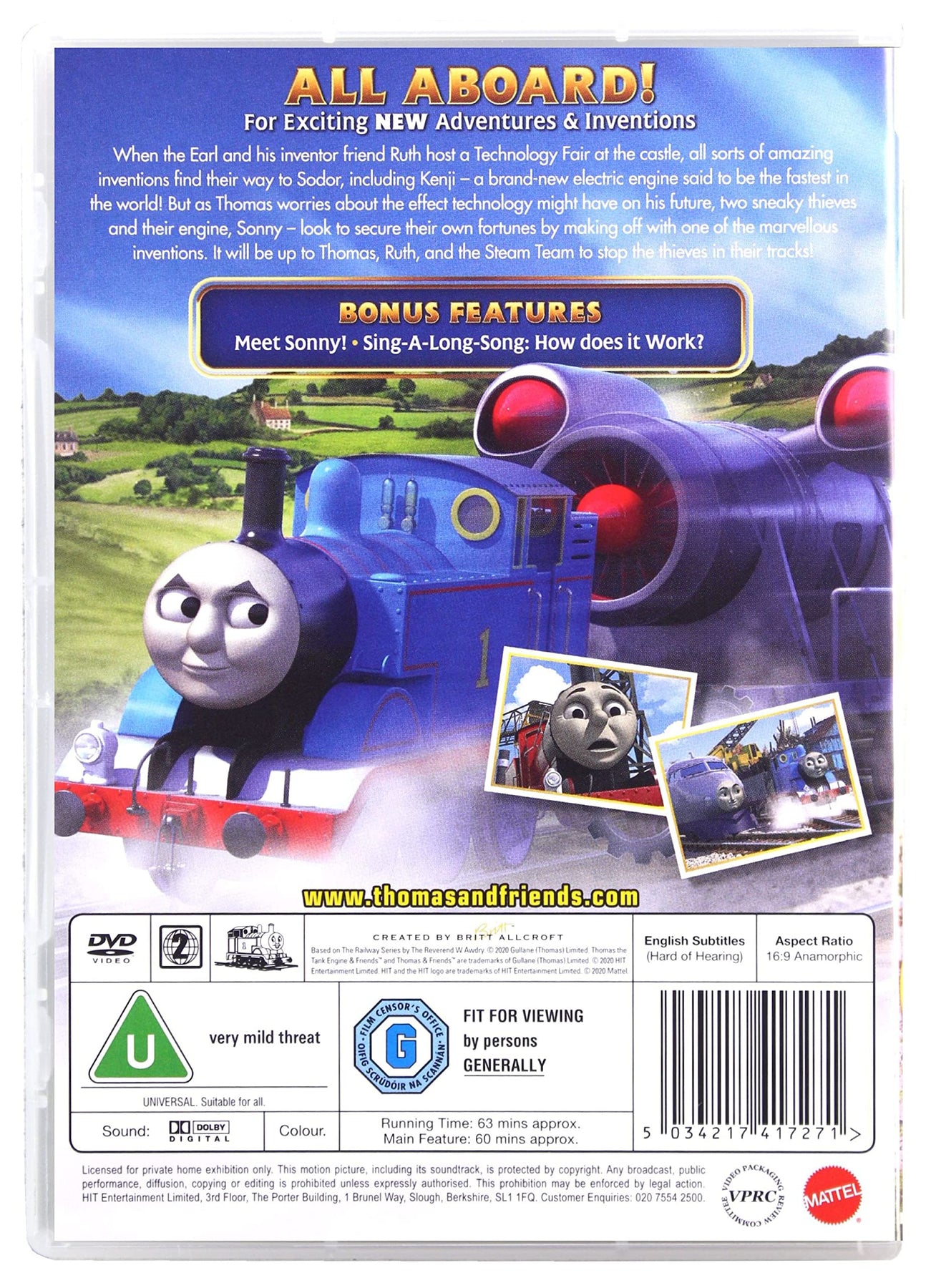 When the Earl and his inventor friend Ruth host a Technology Fair at the castle, amazing new inventions arrive on Sodor, including Kenji – a cutting-edge electric engine said to be the fastest in the world! As Thomas begins to worry about how technology might impact his future, two sneaky thieves and their engine, Sonny, plot to steal one of the marvellous inventions for their own gain. It's up to Thomas, Ruth, and the Steam Team to uncover the scheme and stop the thieves before it's too late.