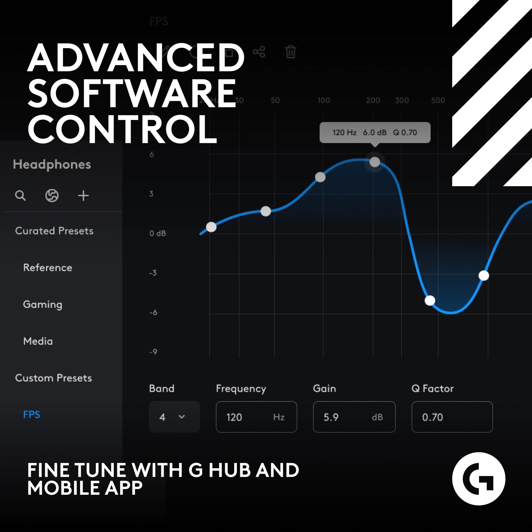 - Customize your audio experience with advanced controls via G HUB and the mobile app, including 10-band parametric EQ, mic monitoring, noise reduction, and stream output mixing