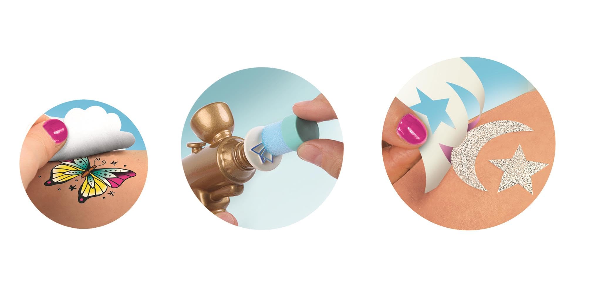 • Clementoni Crazy Chic Studio Temporary Tattoo Kit for Kids with Stencils and Body Art Tools