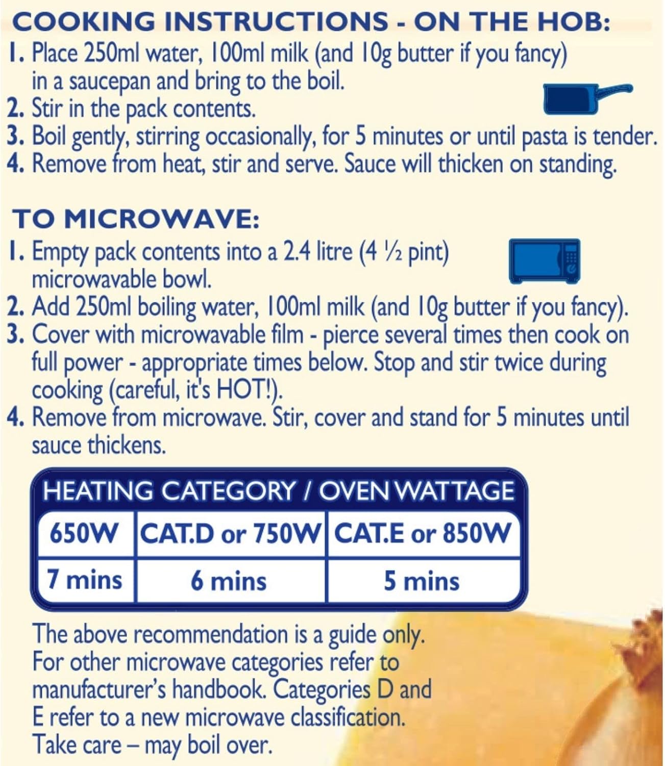 • Ingredients: Macaroni Pasta (76%), Cheese Powder (8%), Maize Starch, Yogurt Powder (3%), Yeast Extract Powder, Onion Powder (1.5%), Sugar, Salt, Emulsifier, Vegetable Oils, Garlic Powder (0.5%), Ground Turmeric, Flavourings, Black Pepper Extract