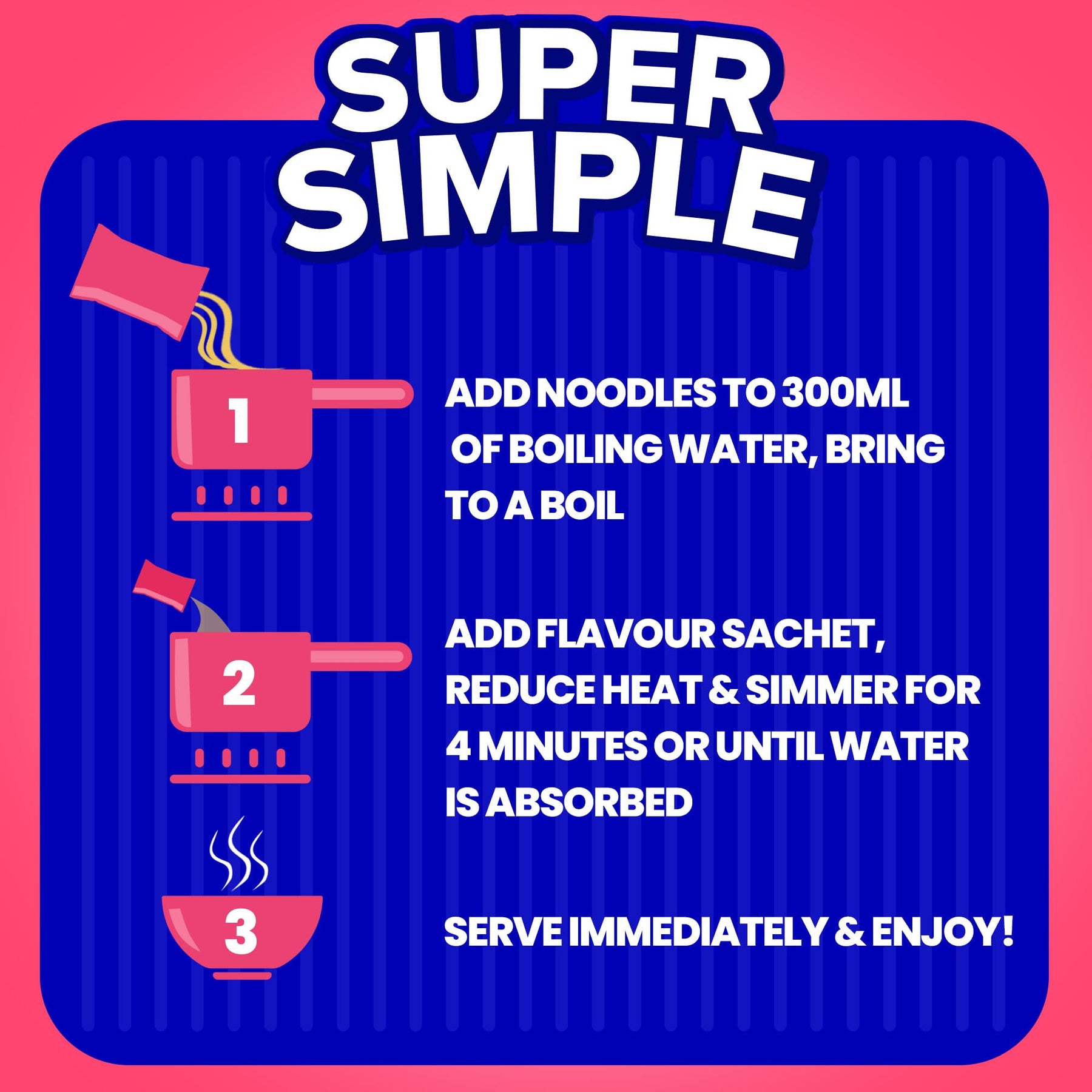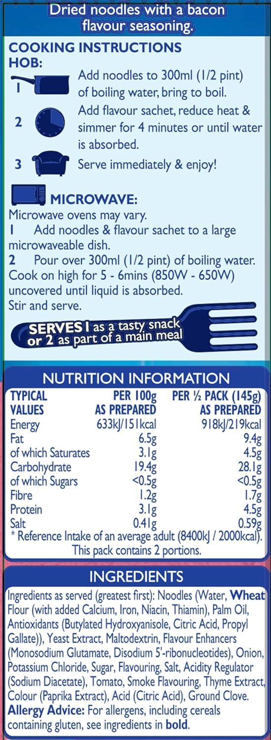 Enjoy a quick and satisfying snack with Batchelors Super Noodles in delicious Bacon Flavour. These instant noodles are ready in just 4 minutes, making them ideal for a fast meal at home, in the office, or at university.