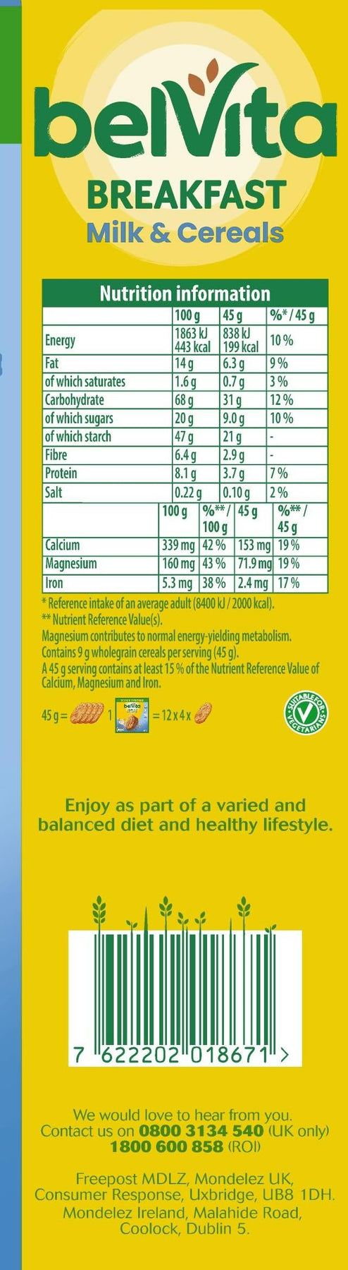 Belvita Breakfast Biscuits Milk & Cereals, a Source of Fibre, 12 x 45 g Bis