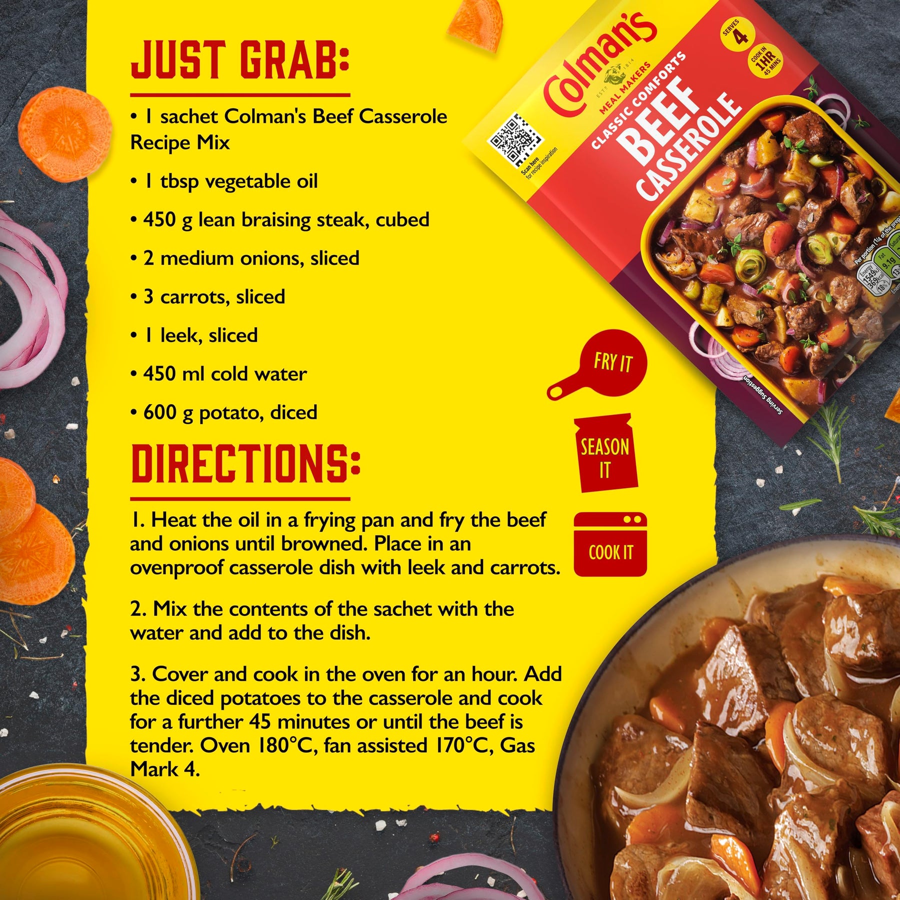 Keep your midweek meals delicious and stress-free with Colman's Beef Casserole Meal Maker – a true classic comfort food staple.