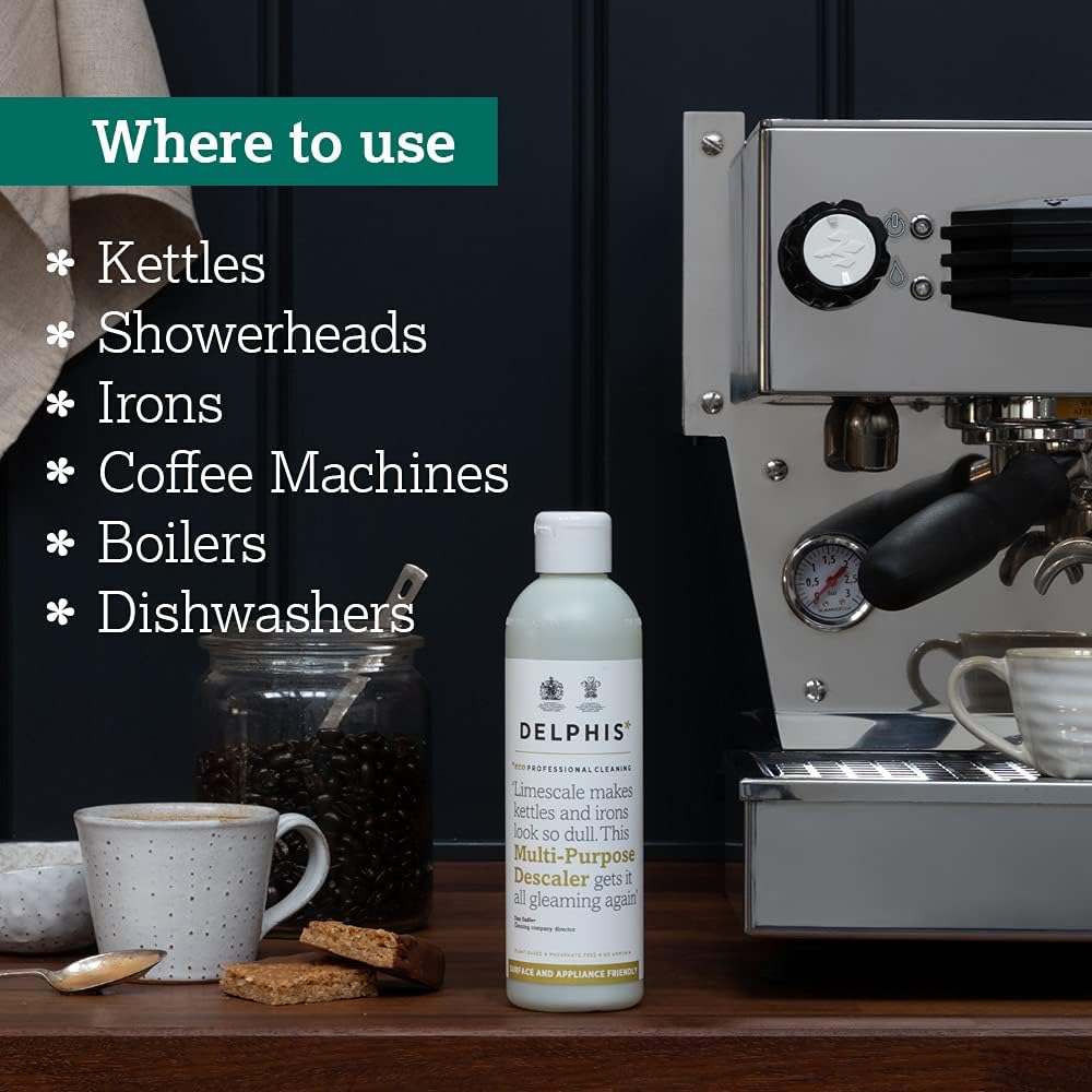 - Highly effective limescale remover for kettles, coffee machines, irons, showerheads, dishwashers, and boilers