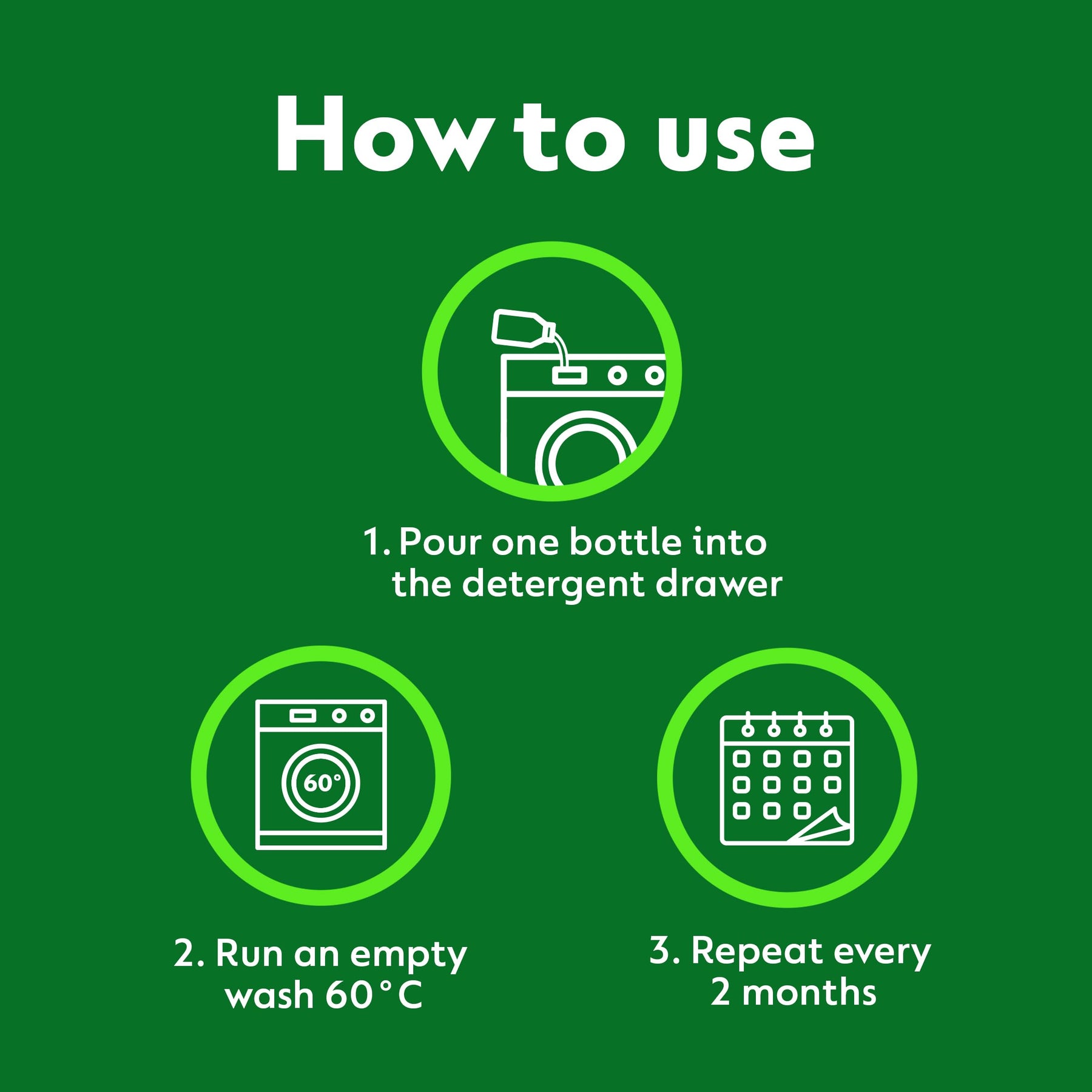 Dettol Antibacterial Washing Machine Cleaner ensures a hygienic and fresh laundry experience by removing bacteria, dirt, odours, and limescale from your washing machine. Over time, bacteria and residue can build up in hidden areas of your machine, affecting cleaning performance and leaving clothes less fresh. This powerful formula kills 99.9% of bacteria* and reaches deep into hard-to-access parts to eliminate limescale and dirt, preventing unpleasant smells and maintaining optimal machine function.