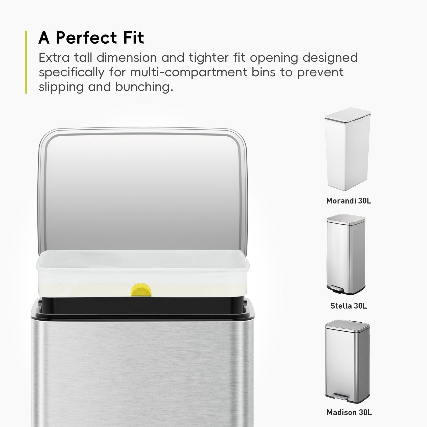 Perfectly sized for 25-35 litre bins, these liners fit seamlessly in popular EKO bins including the Morandi 30L, Stella 30L, and Madison 30L. With dimensions of 55 x 70 cm and an open perimeter of 106 cm, they provide a neat fit without unsightly overhangs.