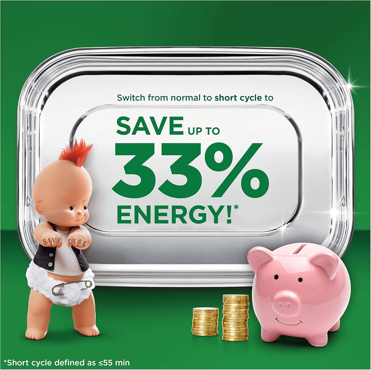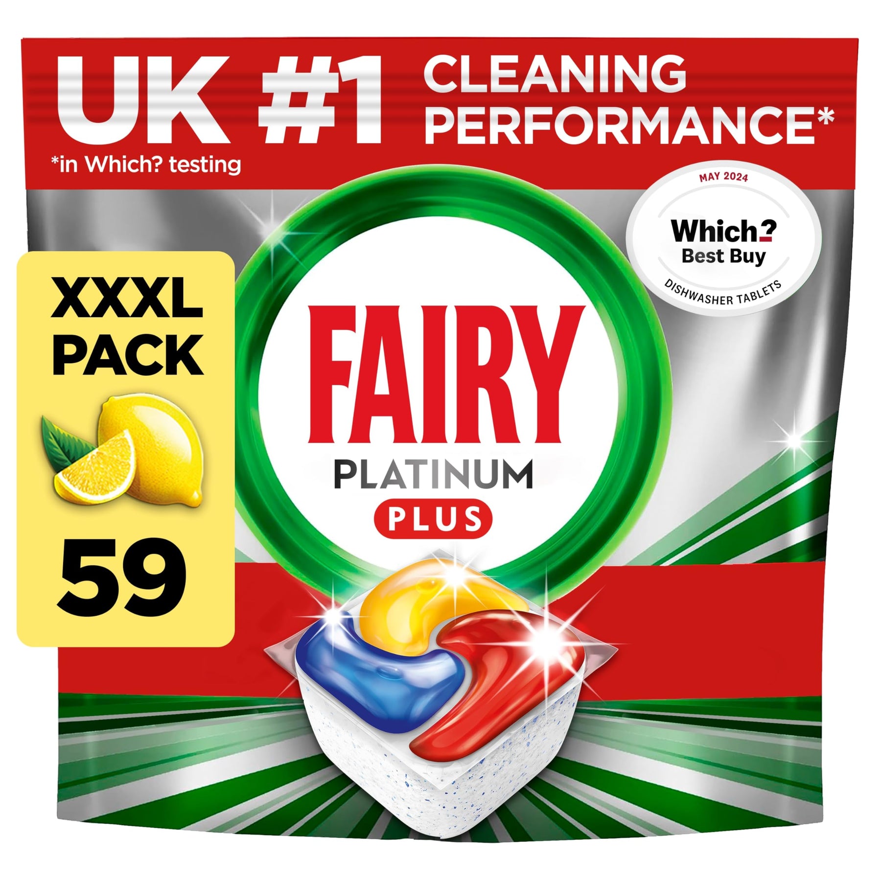 Fairy Platinum Plus All-In-1 Dishwasher Tablets deliver a clean like new, offering Fairy's best tough food cleaning power while helping to lift away dullness built up over time to restore the original shine of your dishes. These powerful tablets are designed to work even in short cycles, making them ideal for busy households looking to save time, energy, and water without compromising on performance.