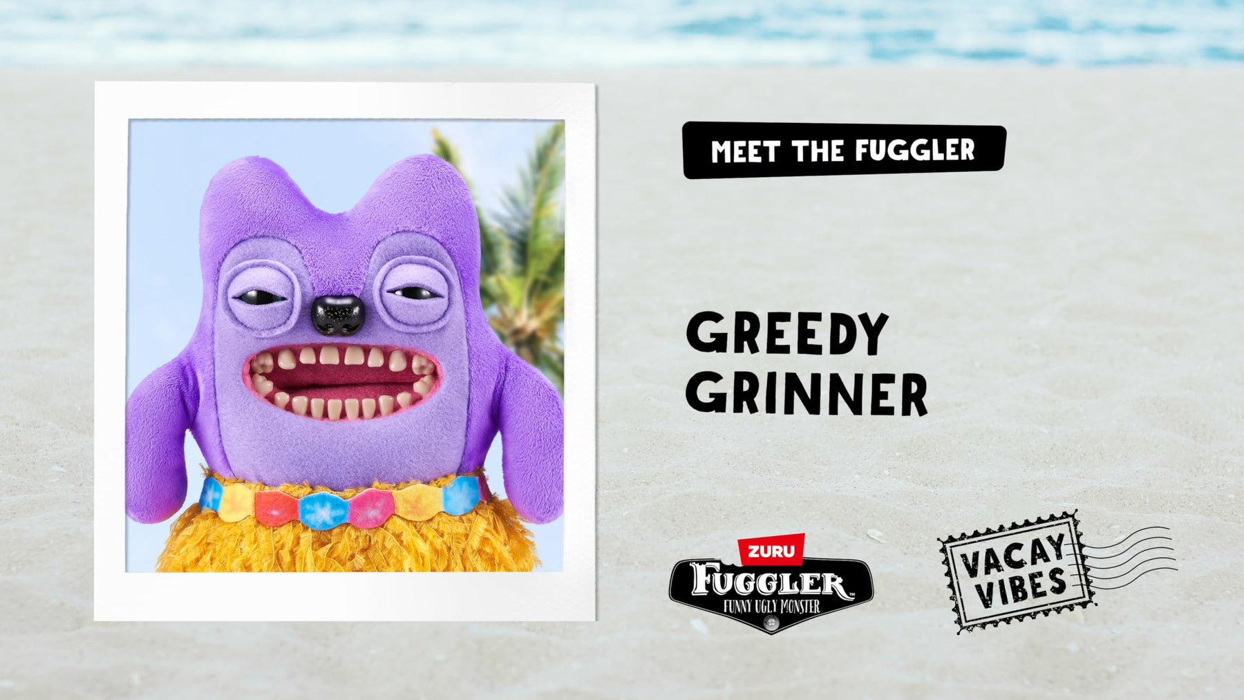 Fuggler Vacay Vibes brings a hilarious twist to plush collectibles with the uniquely grotesque Greedy Grinner in purple. Measuring 9 inches and crafted from super soft cotton plush, this quirky monster is perfect for imaginative play and quirky display. Despite their cute size, these Fugglers come with disturbingly human-like teeth and a mischievous charm that’s sure to stand out!