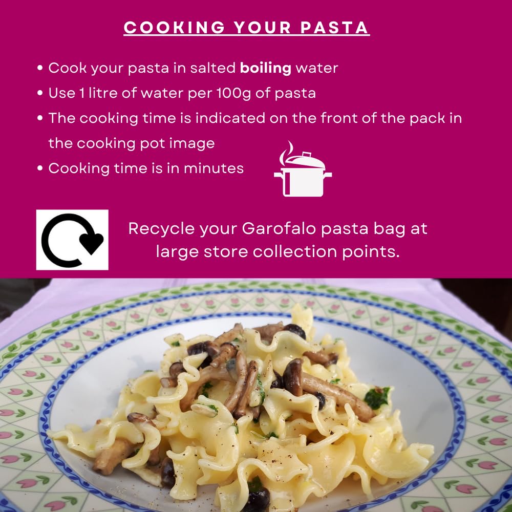 - Cooking instructions: Bring a large pan of salted water to the boil, add pasta, and cook for 9 minutes or until al dente