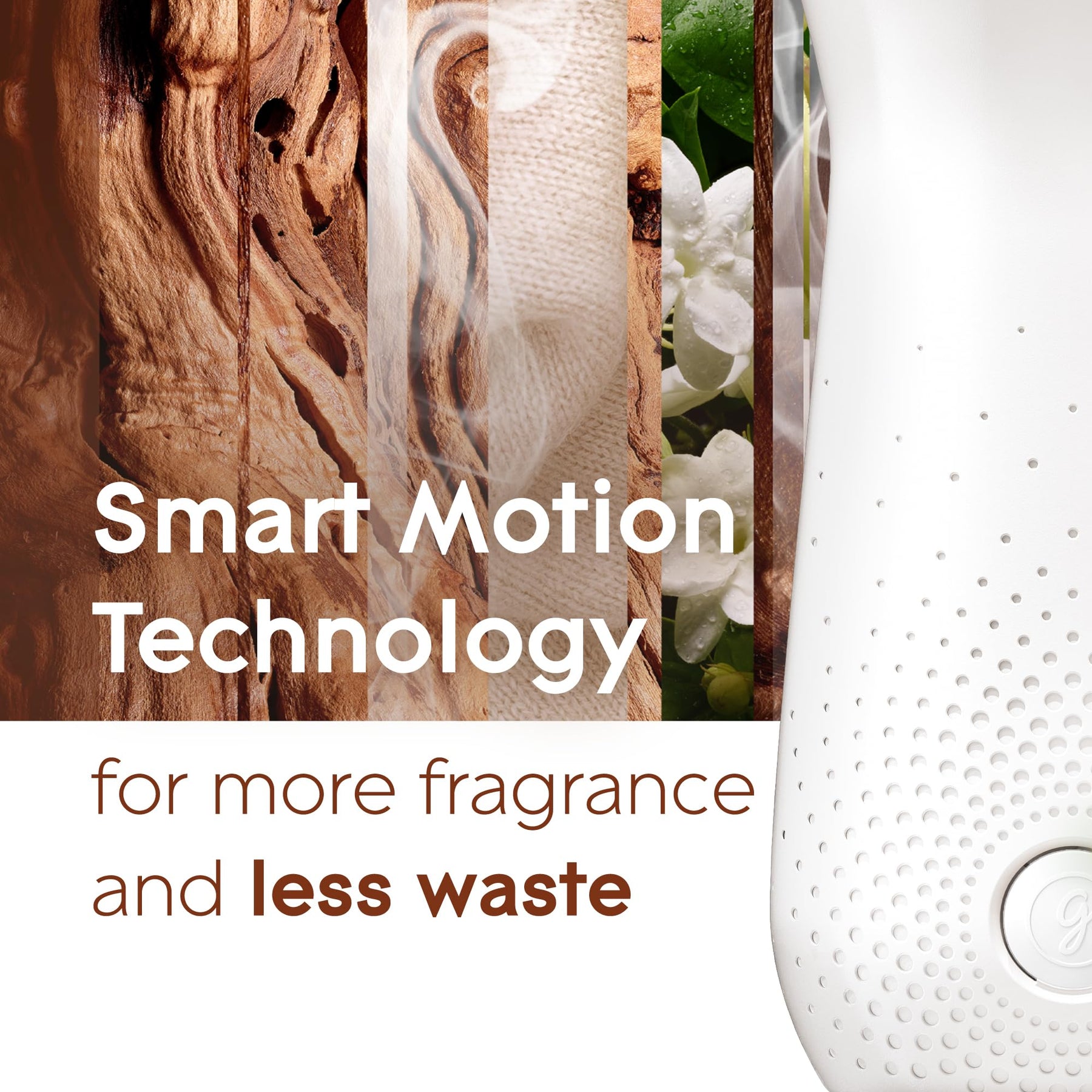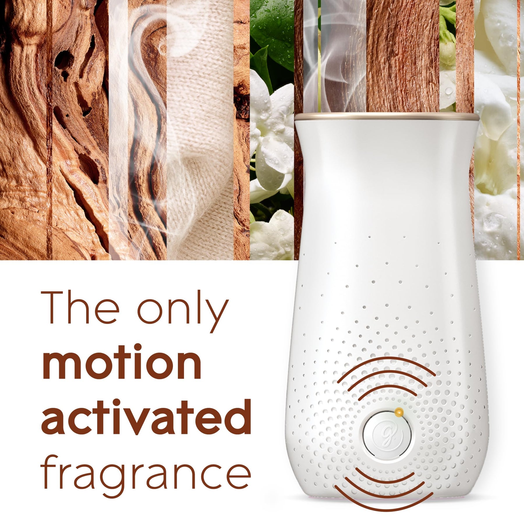 • Motion sensor technology automatically releases a burst of fragrance when movement is detected