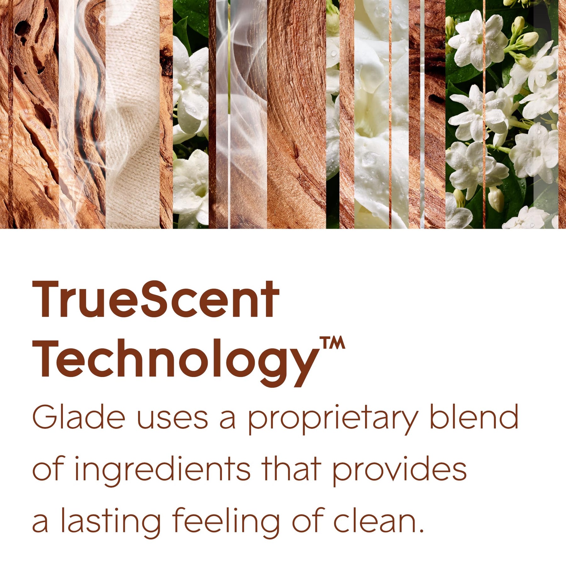 Freshen any room in your home with the Glade Sense & Spray Air Freshener Refill, designed for use with the motion-activated automatic dispenser. This duo pack includes two 18ml refills infused with a luxurious blend of sandalwood, jasmine, amber, vanilla, and citrus notes, releasing a sophisticated fragrance each time you enter the room or turn on the light.