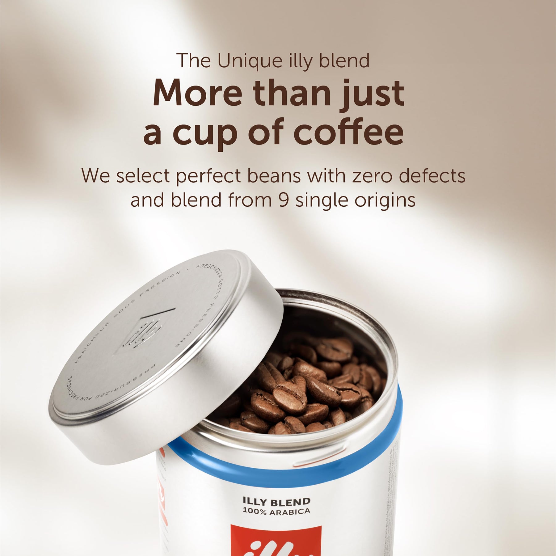 Using an exclusive process, illy packs its coffee in air-free, pressurized cans that preserve the precious aromas and oils, ensuring peak freshness from the first to the last sip. Caffeine content is less than 0.1%. Ideal for those seeking a high-quality decaf without compromising on flavor.