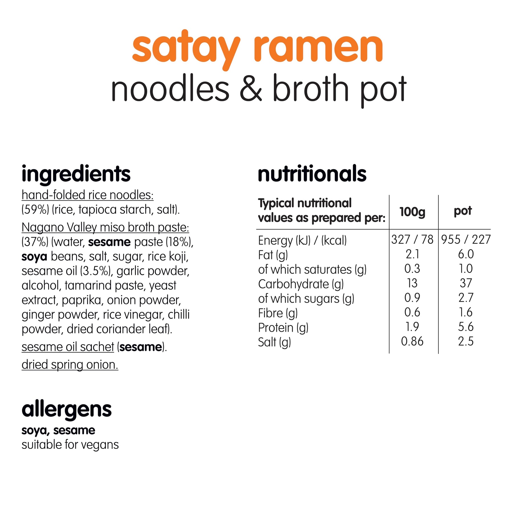 - Restaurant-inspired satay style noodles & broth developed with Monica Galetti