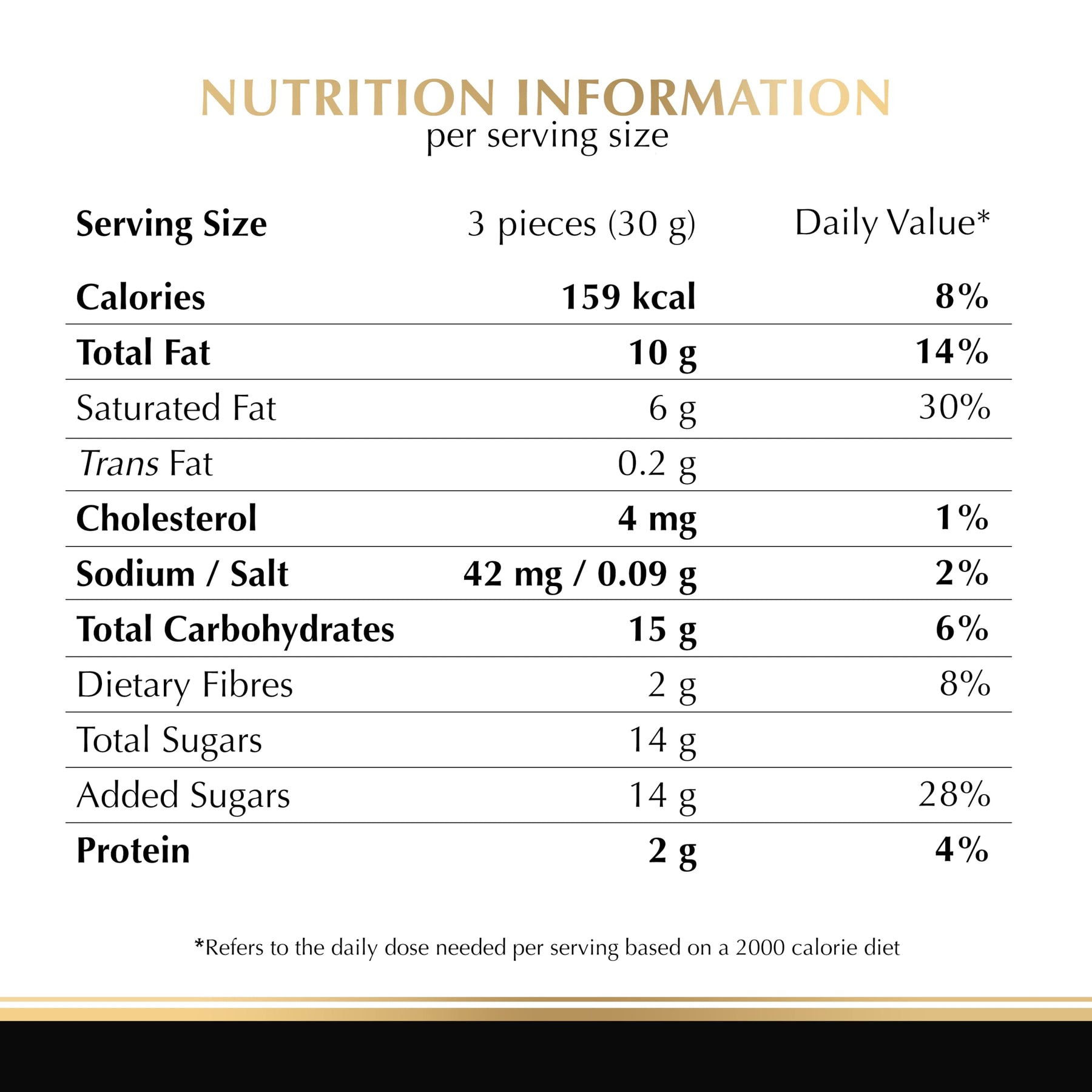 • Ingredients: Sugar, cocoa mass, cocoa butter, anhydrous MILK fat, emulsifier (SOYA lecithin), sea salt (0.3%)
