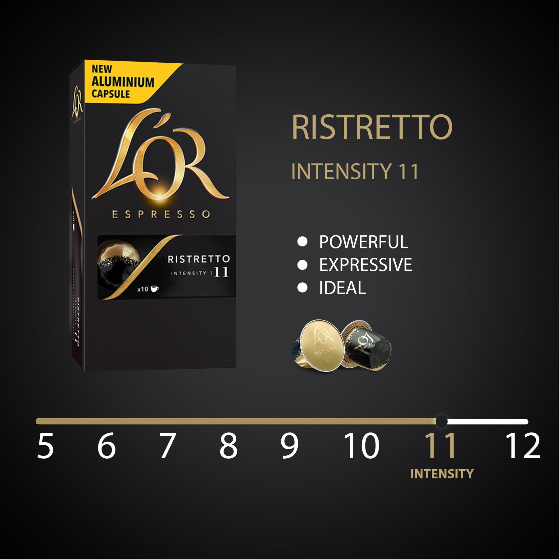 L’OR Ristretto espresso delivers a unique flavouring with notes of ginger and cardamom, offering a full, intense taste enriched with complex fresh spices. Crafted by L’OR Coffee Artists, this blend draws inspiration from the vibrant markets of Sumatra, where the air is filled with the aromas of roasted spices and food cooked in bamboo. This quick and bold blend reveals its layered complexity in an instant, delivering a powerful and expressive experience perfect for a ristretto. The aluminum capsules preserve the coffee's aroma and flavor, ensuring a consistently unforgettable espresso with every brew.