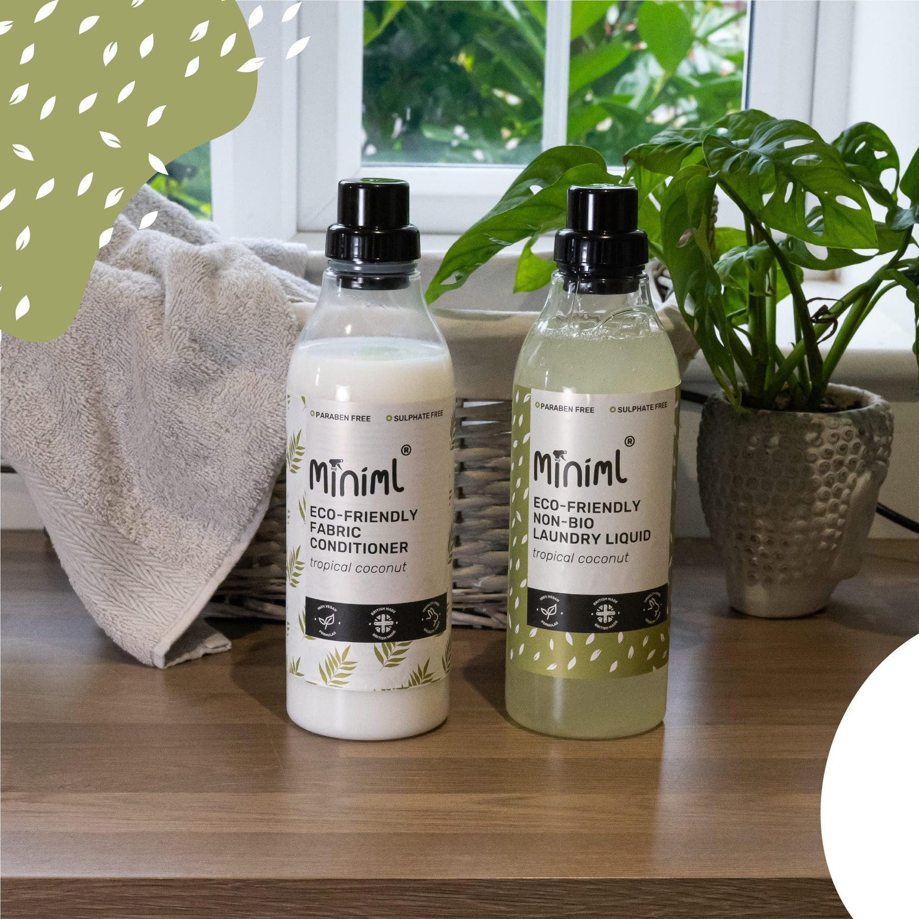 Keep your clothes soft, fresh, and static-free with Miniml's Eco Fabric Softener & Conditioner in Tropical Coconut scent. Crafted with naturally derived softening agents, this eco-friendly formula protects fabric fibres while delivering long-lasting comfort and a breezy coconut fragrance that revitalizes your laundry.