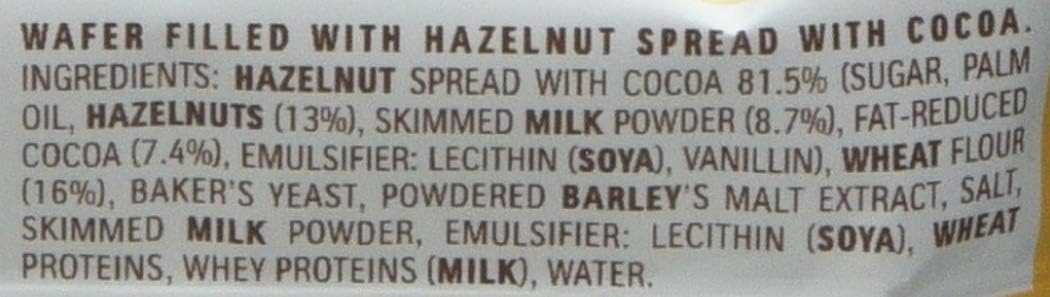 With less than 120 calories per bar, Nutella B-Ready is an ideal choice for a mid-morning break or a quick energy boost. Made with no artificial colours or preservatives, it's a treat you can feel good about. The recipe includes 81.5% Nutella spread made from sugar, palm oil, hazelnuts (13%), fat-reduced cocoa, skimmed milk powder, whey powder (milk), lecithin (soya), and vanillin, along with wheat flour, barley malt extract, and milk proteins.
