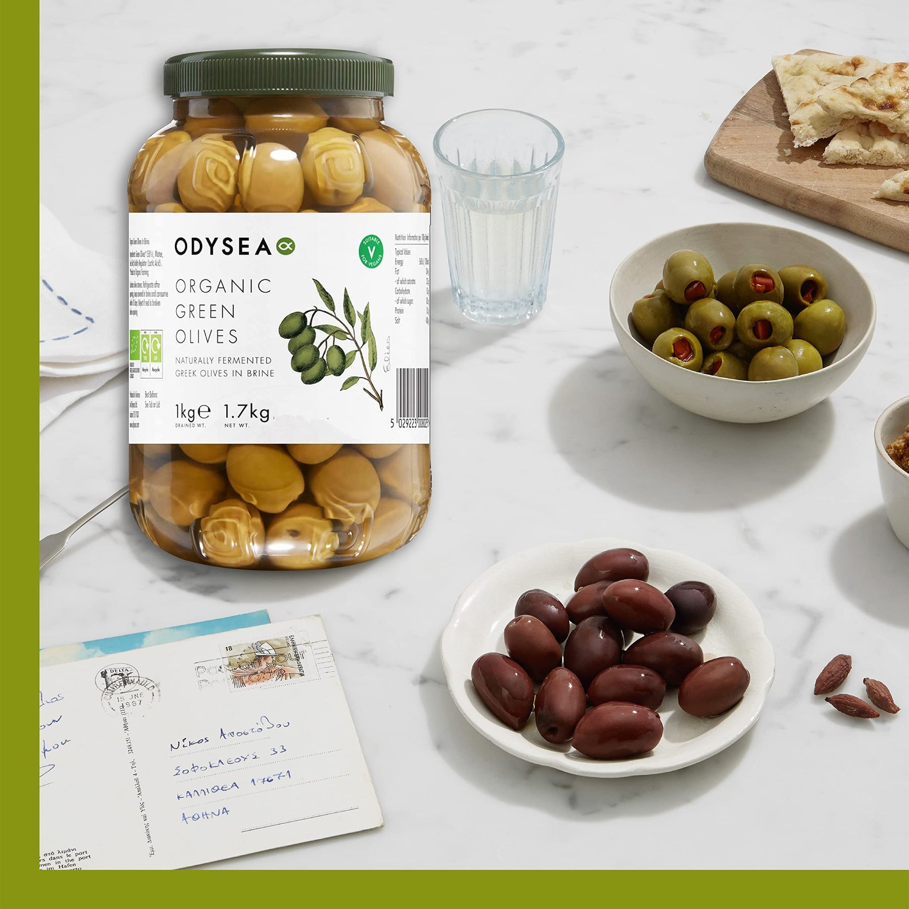Organic Conservolia whole green olives in brine, naturally fermented without caustic soda treatment. These hand-picked olives offer a rich, fruity flavour and a firm, meaty texture, making them ideal for snacking, cooking, or adding to pizzas and platters.