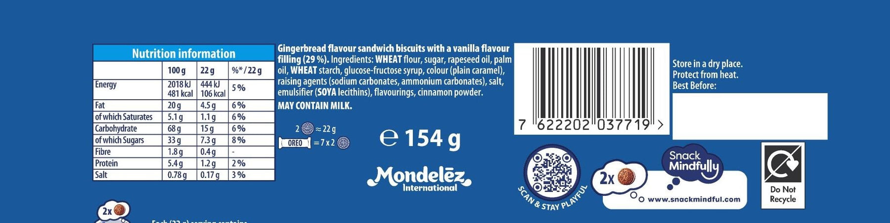 • LIMITED EDITION: Indulge in OREO's Festive Gingerbread Flavour Sandwich Biscuits, filled with Vanilla Crème for the perfect Christmas treat