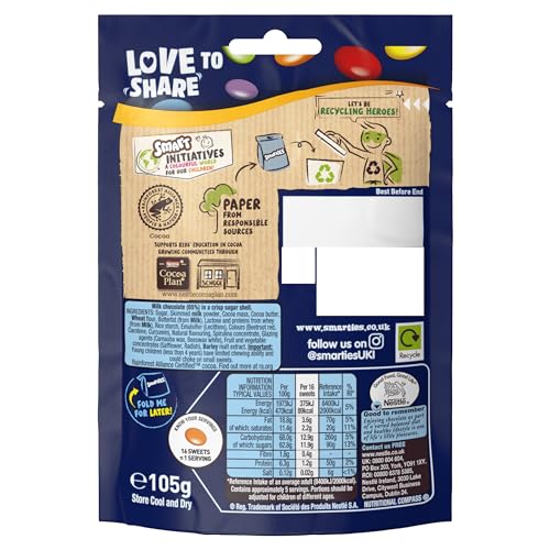 Indulge in the classic taste of Smarties Milk Chocolate covered in colourful crisp sugar shells. This pack contains 8 individual 105g bags, perfect for sharing with friends and family at birthdays, Thanksgiving, or as a thoughtful thank you gift.