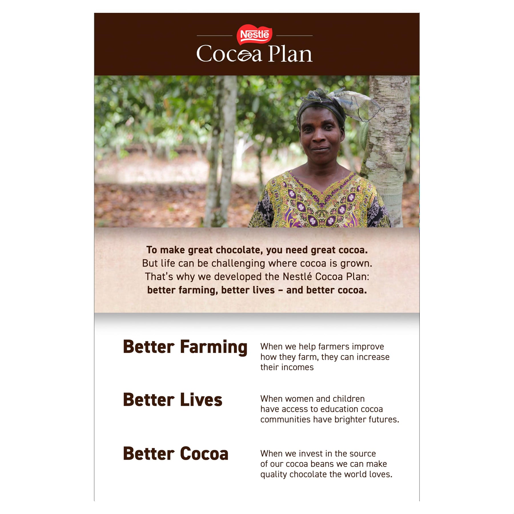 • Sustainably sourced cocoa: From the Nestlé Cocoa Plan