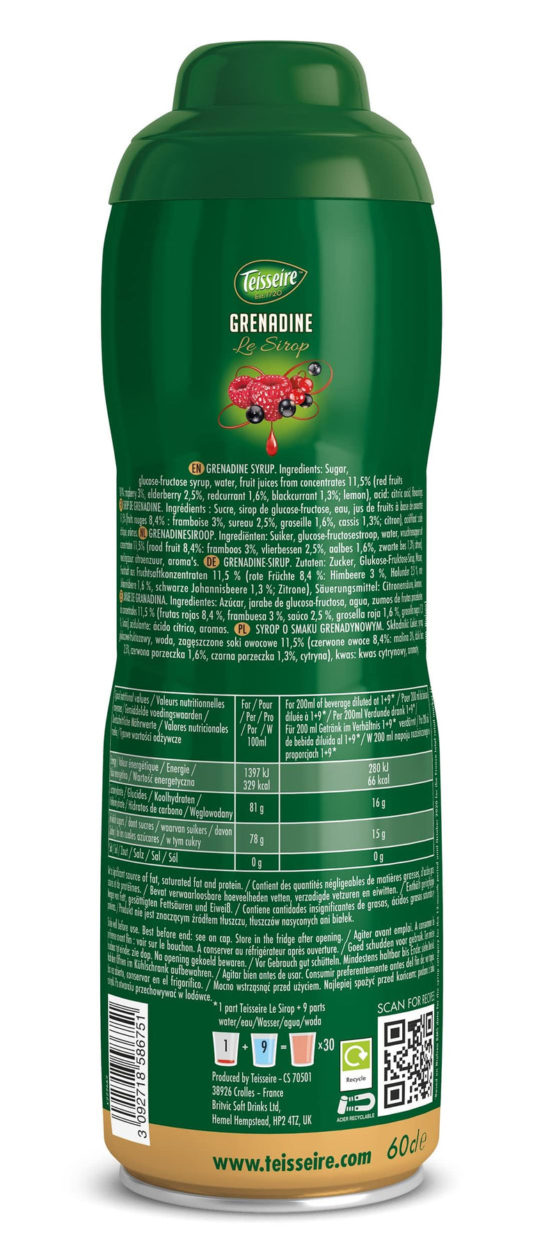 Indulge in the vivid red fruity flavour of Teisseire Grenadine Syrup, crafted with the finest ingredients to bring a touch of French joie de vivre to your drinks. With 11.5% fruit juice from concentrates, including raspberry, elderberry, redcurrant, blackcurrant, and lemon, this syrup delivers a refreshing burst of real fruit flavour in every drop.