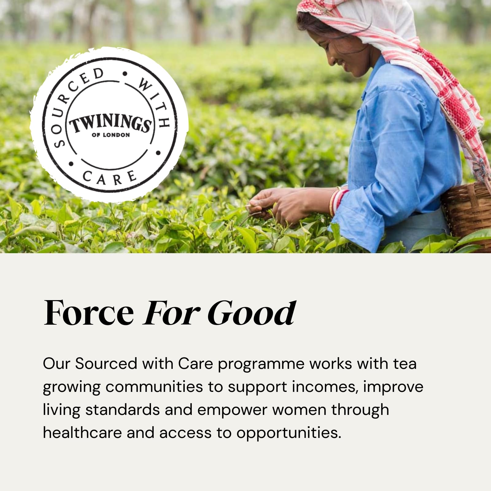 • Features herbal infusions and green teas such as Hibiscus, Camomile, Rooibos, Nettle, and Tulsi