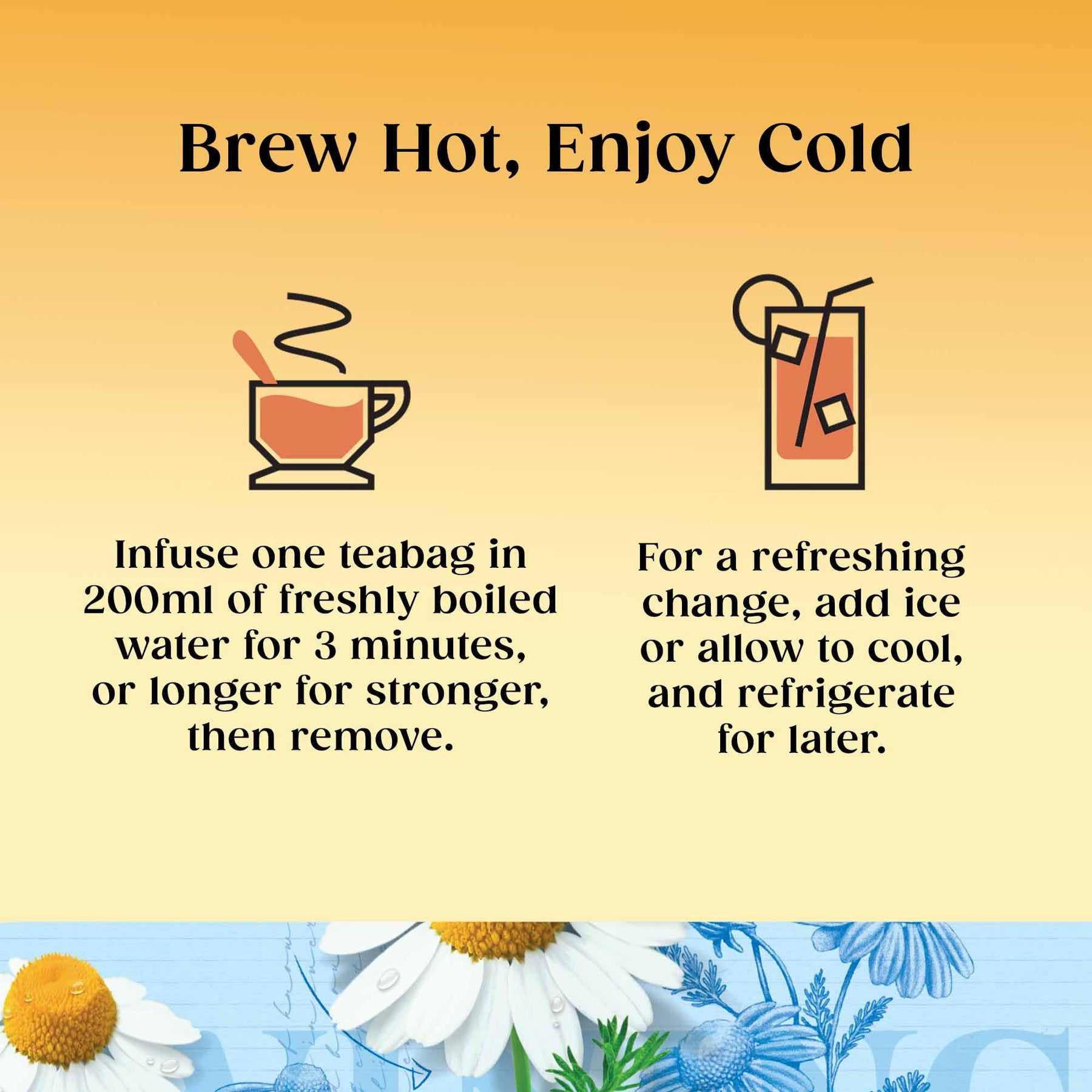 Twinings Organic Pure Camomile is a soothing herbal tea made from 100% organic camomile. Each of the 20 tea bags is crafted using gently steamed herbs to preserve their delicate flavor and natural qualities. This all-natural tea is perfect for relaxation, especially in the evening, as camomile may cause drowsiness. Avoid operating heavy machinery after consumption.