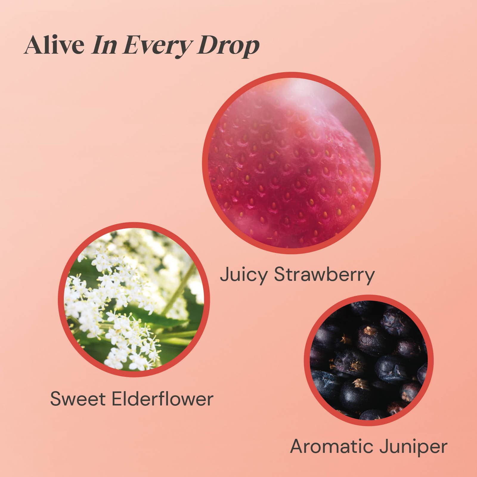 This blend captures the essence of an English Summer afternoon in a glass. Intense, juicy strawberry will hit your taste buds first, followed by sweetness from the elderflower and a subtle hint of aromatic juniper.