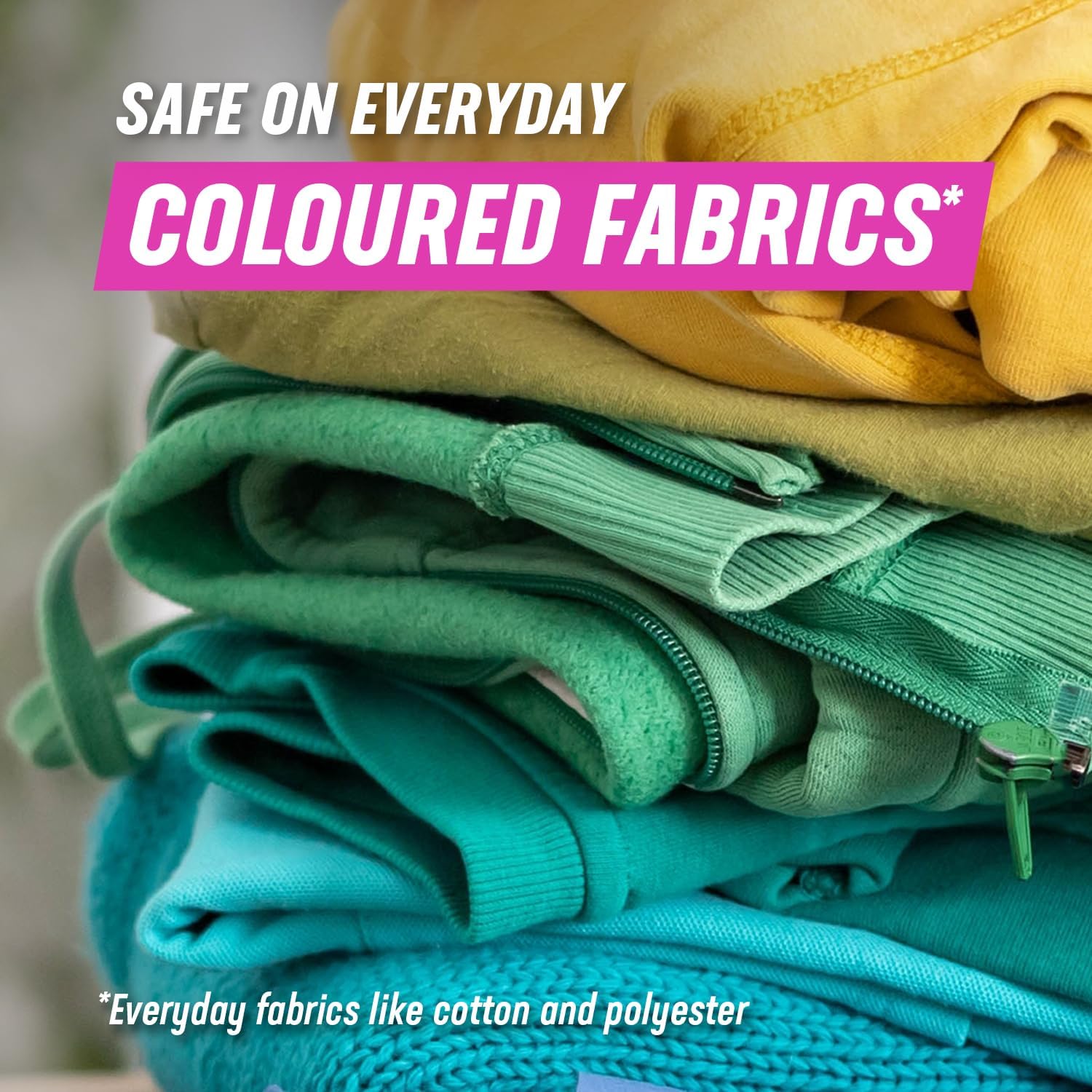 • Chlorine bleach-free formula safe for colours and whites