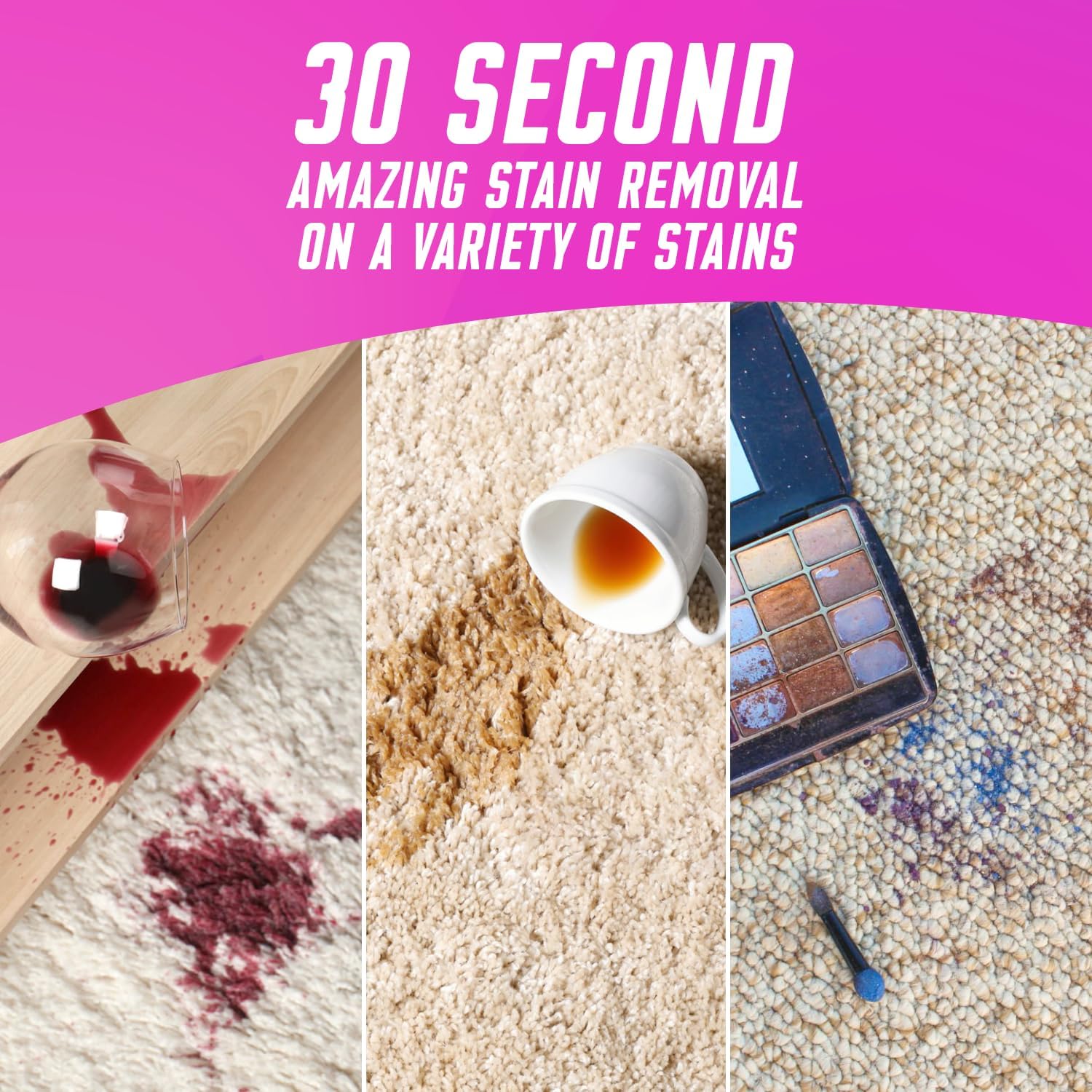 • Removes common stains including wine, coffee, tea, soil, and pet urine