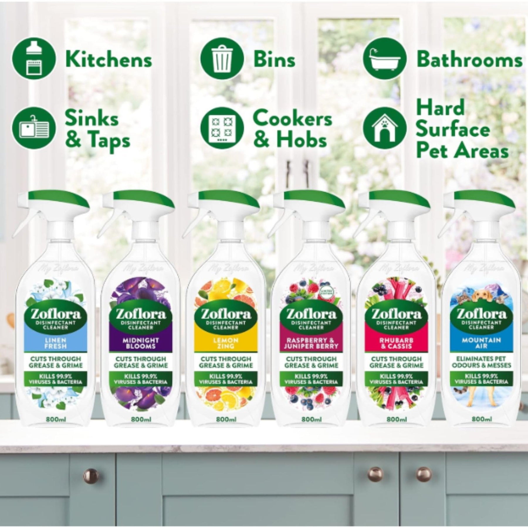 Zoflora Lemon Zing Multipurpose Disinfectant Spray, 800ml Antibacterial Multi-Surface Cleaner